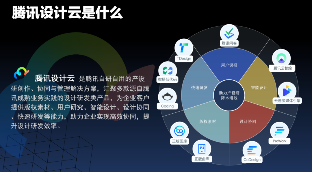 随着互联网的快速发展,产品规模和功能日益增加,开发场景变得愈发复杂,传统的设计研发模式已经不足以支撑业务的高速扩张。无论是互联网公司还是传统软件企业,大家都在寻找提升研发效能的路径,以面对日益复杂的软件开发需求,并期待能更高效、更高质量、更可靠、更持续地交付更优的业务价值。 在这样的背景下,腾讯推出了腾讯设计云,以期帮助企业提升设计研发效率,实现高效协同。不仅如此,腾讯还在近期宣布将企业级设计体系 TDesign 正式开源,进一步将腾讯自有能力释放给更多企业。 在腾讯海量的 to B 和 to C 的业务实战中,设计团队为了服务各自的业务,在生产过程中开发了大量工具或平台,范围涵盖素材资源、设计协作、图片视频素材制作与剪辑、以及数据可视化和低代码搭建等方面。 自 930 变革以来,自研上云、开源协同就成为了腾讯重要的技术方向,如何让云服务从资源管理变成一个完整的研发体系,从而实现降本增效是腾讯一直在思考的问题。在这样的背景下,腾讯公司级联合团队将这些能力和内容提炼成设计资产、管理工具和多方面的产品能力,汇聚成了一个公司级的设计工具平台——腾讯设计云,聚焦解决产设研工作流程中的常见痛点,提供效能工具、正版素材资源、解决降本、增效的问题,希望达成高效设计、轻松协同的最终目标。 腾讯设计云的产品矩阵包括:运用于调查分析的腾讯问卷、智能化设计生产平台智绘设计、长短视频内容创作与协作平台云创多媒体引擎、一站式设计协作平台 CoDesign、团队协同平台 ProWork、低代码开发平台微搭低代码、软件研发管理协作平台 CODING 、企业级产品设计体系 TDesign 以及正版图库直通车和正版曲库直通车两大版权素材库,为企业客户提供了版权素材、用户研究、智能设计、设计协同、快速研发等能力,并且这些设计能力全部源自腾讯公司内部的 Oteam 团队。 据了解,腾讯设计云的产品服务着 QQ 音乐、腾讯云、腾讯会议、企业微信等大型产设研团队、也服务过数字广东、富途证券、蘑菇街等大型企业。除此以外,腾讯设计云不仅汇聚了多款 SaaS 化的成熟产品,还包括一些未上云但已经在腾讯内部服务于项目提效的工具。尽管各个产品的商业化阶段不尽相同,但它们都在各自所诞生的部门中发挥着作用。 所以说,“生于腾讯,聚于腾讯”便是对腾讯设计云诞生过程最好的概括。 据腾讯设计云团队透露,随着项目进度的推进和产品成熟度提升,未来还会将更多已沉淀的能力开放出来,比如在设计师比较关注的设计稿校对方面,持续为企业提供数据可视化、智能生产工具等提升生产效率的工具。 事实上,在产品开发的过程中,团队参与人员的痛点是各不相同的:比如设计师希望了解组件库的使用规范、适用场景、拓展方案等等;产品经理希望知道组件能否满足业务场景等等;开发更关心组件的接口、方法、属性等等。想逐一解决上述痛点成为了一个现实又复杂的问题,所以不少企业都会选择使用组件库来提升设计效率、产研效率。 腾讯自然也不例外,并且大部分部门都有各自的组件库产品。 但对于腾讯这样的企业而言,这种做法也暴露出了许多问题:首先是重复人力造“轮子”,每个业务团队都需要剥离一部分人力去维护组件库;其次,这些组件库因为人力投入程度不同,其产品质量和维护的情况层次不齐,通用交互方式的体验也不一致;此外,由于这些组件库都有各自的优势、劣势,导致腾讯内部在技术选型时困难屡现。 据了解,直到 2019 年,腾讯内部重复造轮子的情况愈发严重,公司有强烈的呼声想把这些轮子合并在一起,为了应对这一情况,腾讯内部建立了开源协同委员会,腾讯的设计师们思考到:“有没有可能通过开源协同,解决过去腾讯内部团队分别维护设计体系,各设计体系之间质量参差不齐的问题”。 于是在 2020 年 2 月份,通过多次远程会议,确定了 TDesign 的产品目标和技术路线,并在全员的参与下共同投票选出 TDesign 的名字。“它完整代表着腾讯体系下的设计语言,同时也留有概念扩展的空间,后面可以增加其他模块组件。” TDesign 团队介绍道。 TDesign 设计伊始,就是要方便腾讯内部的设计师与研发人员进行使用,所以 TDesign 需要支持不同的框架、不同的设计资源,还要有一套完整的设计价值观和设计风格指南,也使得 TDesign 有了一些区别于其他组件库的特性,总结来看,有以下三个方面: 业界的组件库基本以支持一至两个技术栈为主,而 TDesign 则支持了 Vue 2、Vue 3、React 和移动端 Vue 3、微信小程序的开发,与此同时,Augular、Flutter 等热门技术栈也在开发当中。 目前,TDesign 的大部分组件已经完成了内测版本的发布,后续将逐步发布公测版本和正式版本。 为了实现开发与设计之间的高效协同,TDesign 中还包含了色彩体系、文字系统、动效设计、图标元素、布局结构等一系列设计组件资源,并覆盖了 Axure、Sketch、Figma、Adobe Xd 等各大产品设计软件。除了常规设计资源,TDesign 还提供了辅助设计工具如 Sketch 设计插件,也支持在腾讯 Codesign、即时设计、Pixso、墨刀等市面常用设计工具中使用 TDesign 设计物料。 TDesign 将腾讯内部多年设计经验提炼总结为专业的设计指南,其所提供的通用设计解决方案,能够帮助产品经理、设计师、开发者等角色高效完成企业级产品的设计和研发,并保持设计语